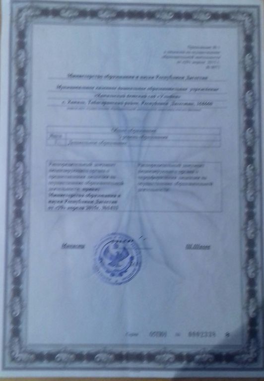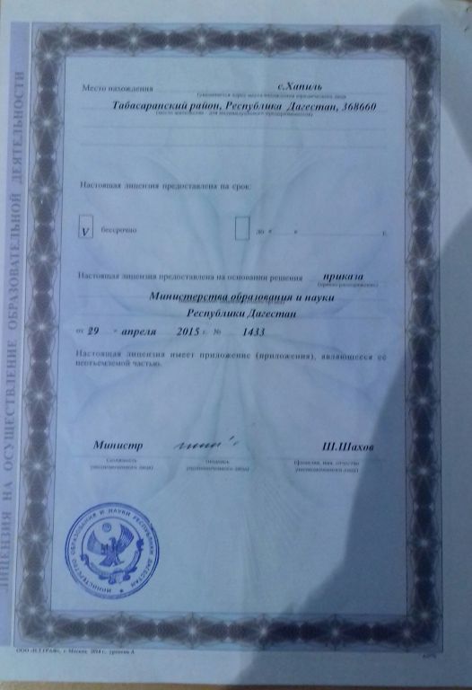 | Адрес местонахождения образовательной организации* | 368660 Республика Дагестан ,Табасаранский район,с.Хапиль |